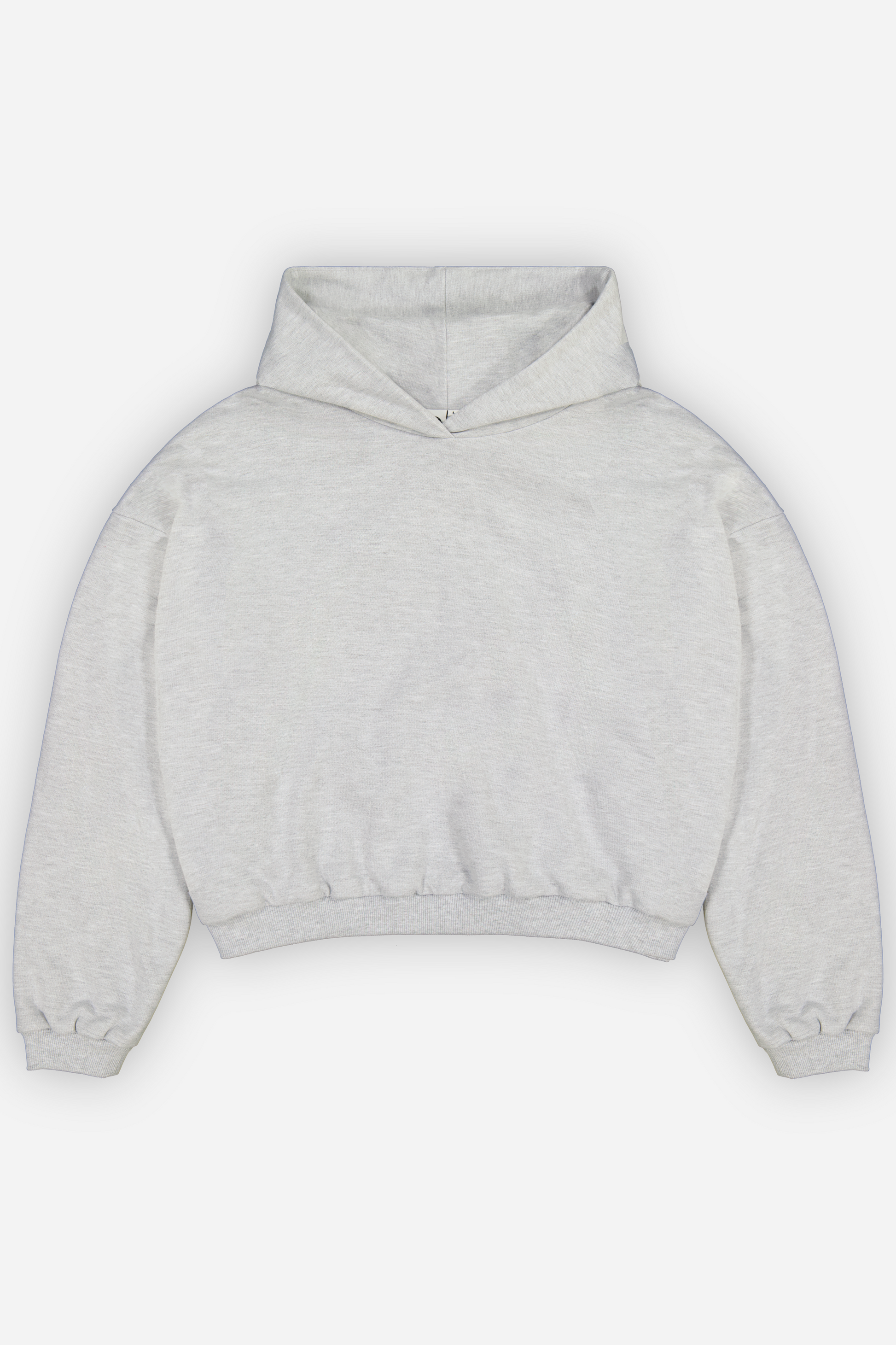 A reworked foundational layer. Crafted from heavyweight 100% cotton fleece, this hoodie is cut with a cropped, boxy silhouette that hangs perfectly off the shoulder. Designed with a double-lined jersey hood, no drawstrings, and a clean finish throughout. Made in South Africa.